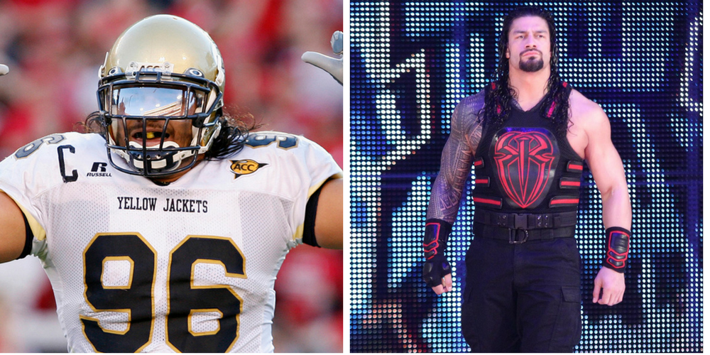 Roman Reigns starred as a defensive tackle at Georgia Tech before turning to wrestling. Today, he’s one of WWE’s most dominant champions, with football conditioning and explosiveness clearly visible in his in-ring style.