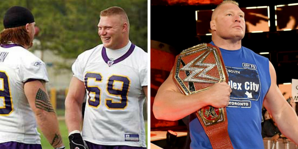Brock Lesnar briefly pursued an NFL career with the Minnesota Vikings after a dominant collegiate athletic background. In wrestling, he became a multi-time world champion and one of the most legitimate crossover athletes in sports entertainment history.